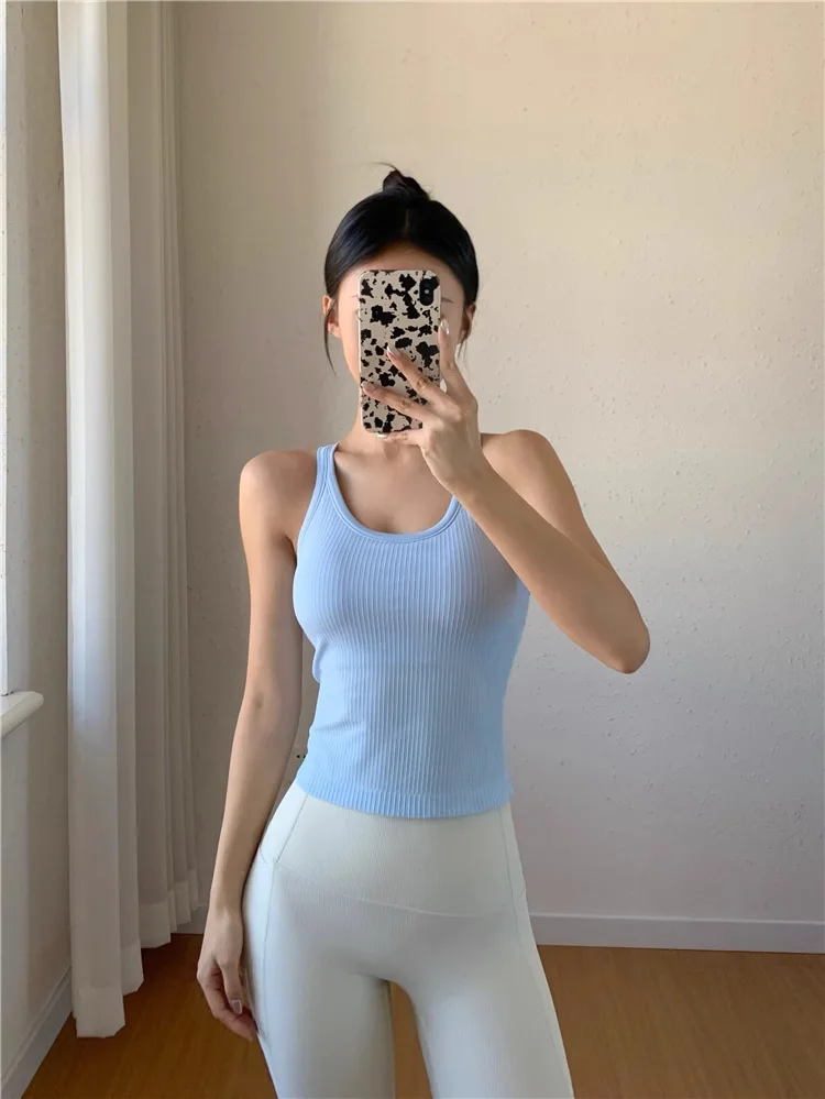 Fitness Tank Top with Chest Pad Women Yoga Exercise Tops Fitness Sleeveless Tank Top