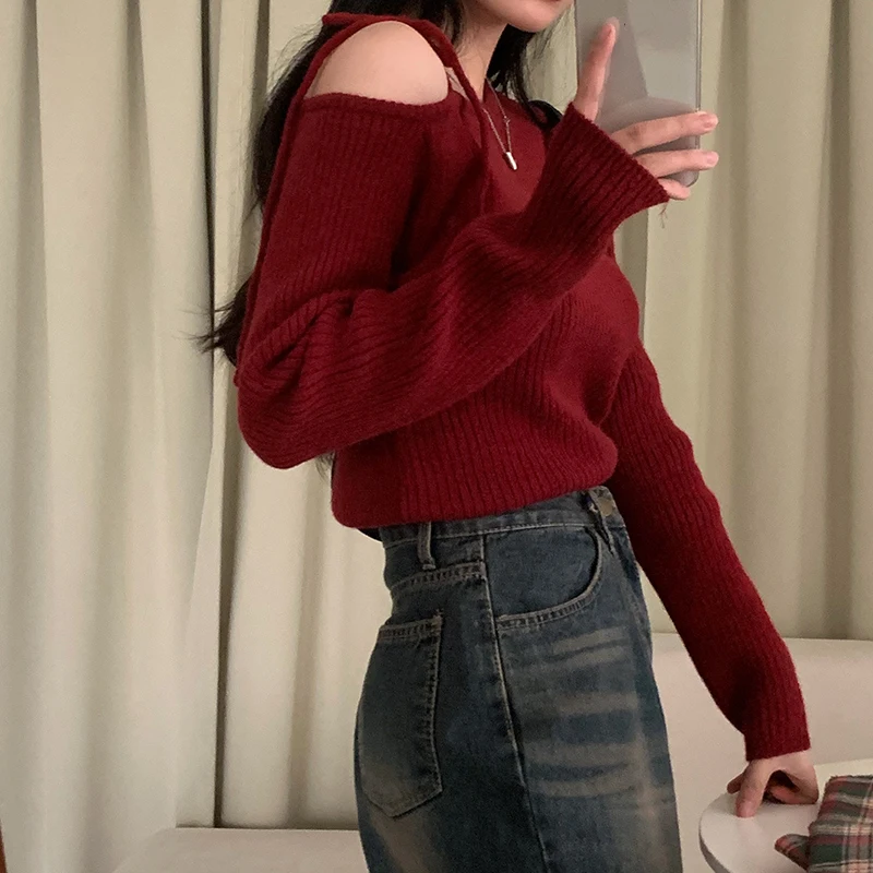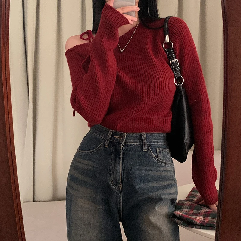 Jumper Womens | Sweater Women Irregular Skew Collar Long Sleeve